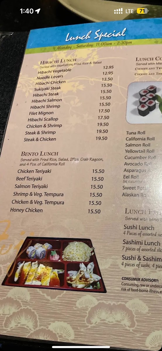 Fuji Japanese Steakhouse Menu